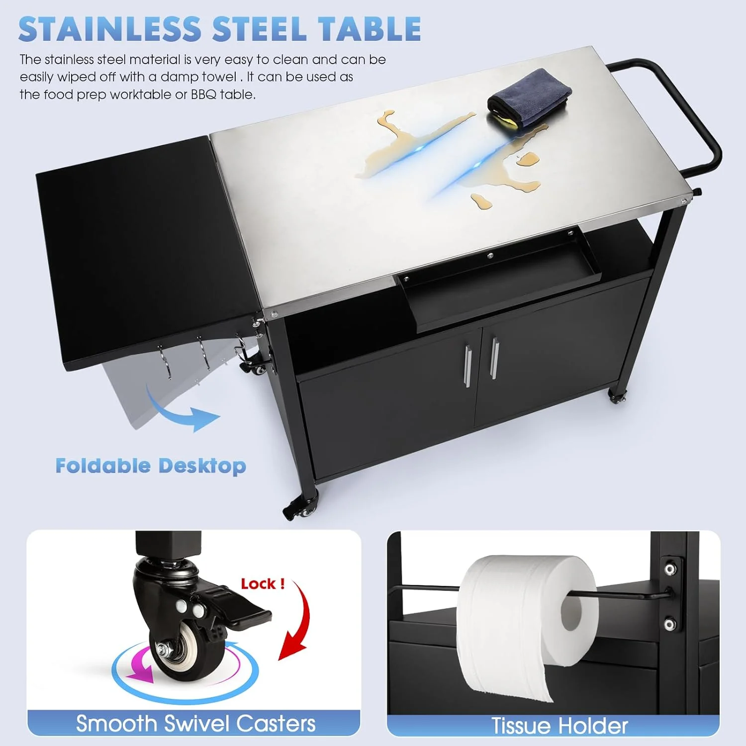 Outdoor Storage Cabinet with Wheels - Heavy Duty Metal Grill Table for BBQ, Patio, Backyard (XL)